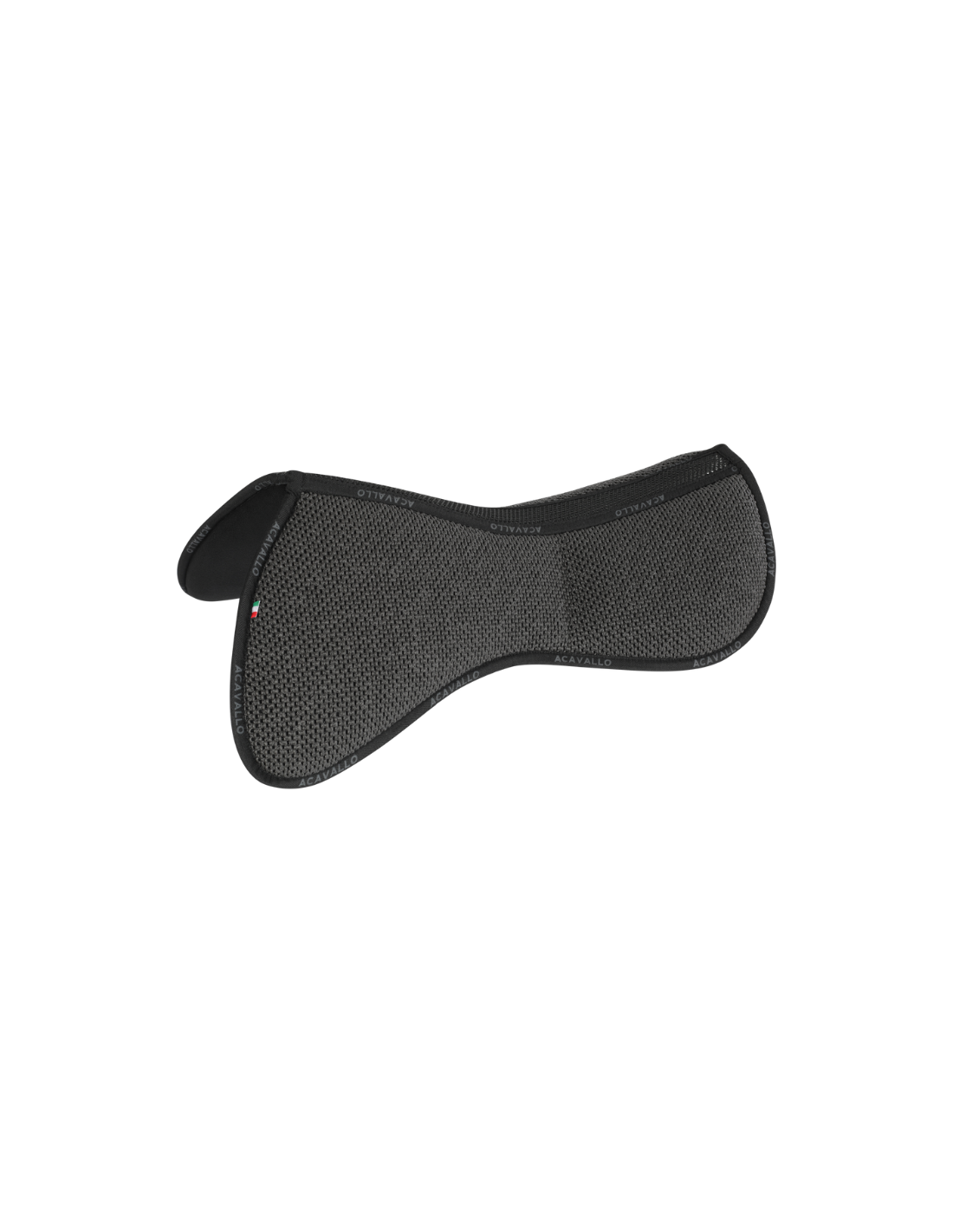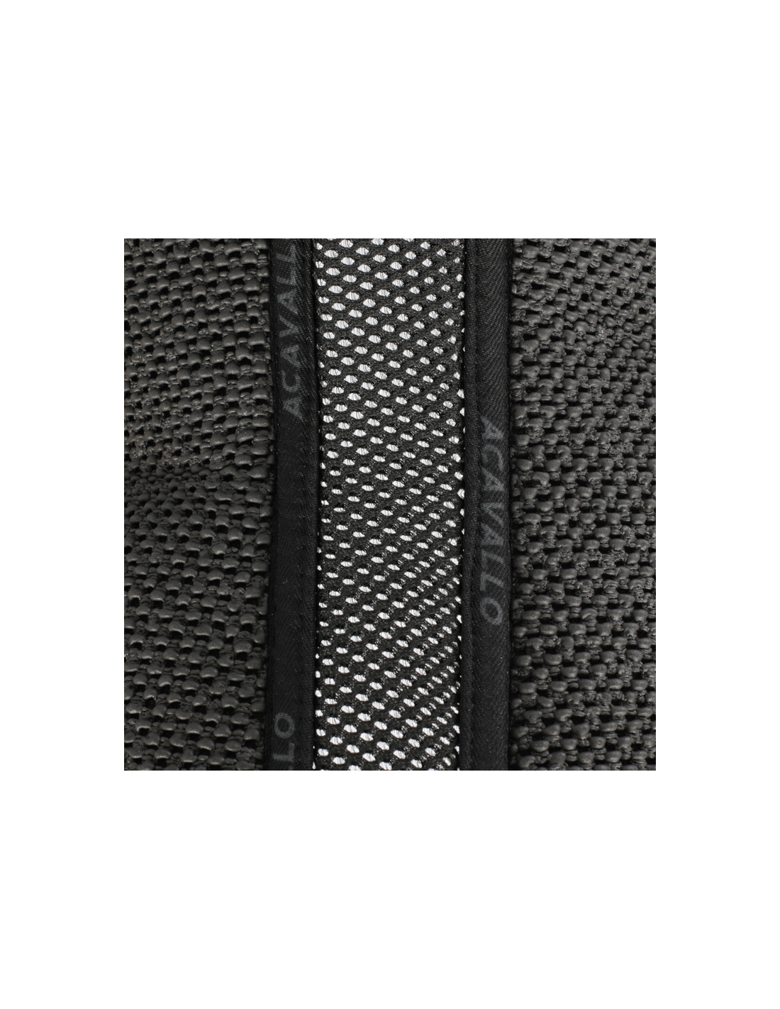 L'amortisseur en mousse à mémoire de forme Acavallo avec garrot modelé et épine dorsale est composé de 3D spacer et de polychlorure de vinyle (PVC) expansé, dont les principales caractéristiques techniques font de ce polymère un matériau parfaitement adapté à la conception de produits équestres.