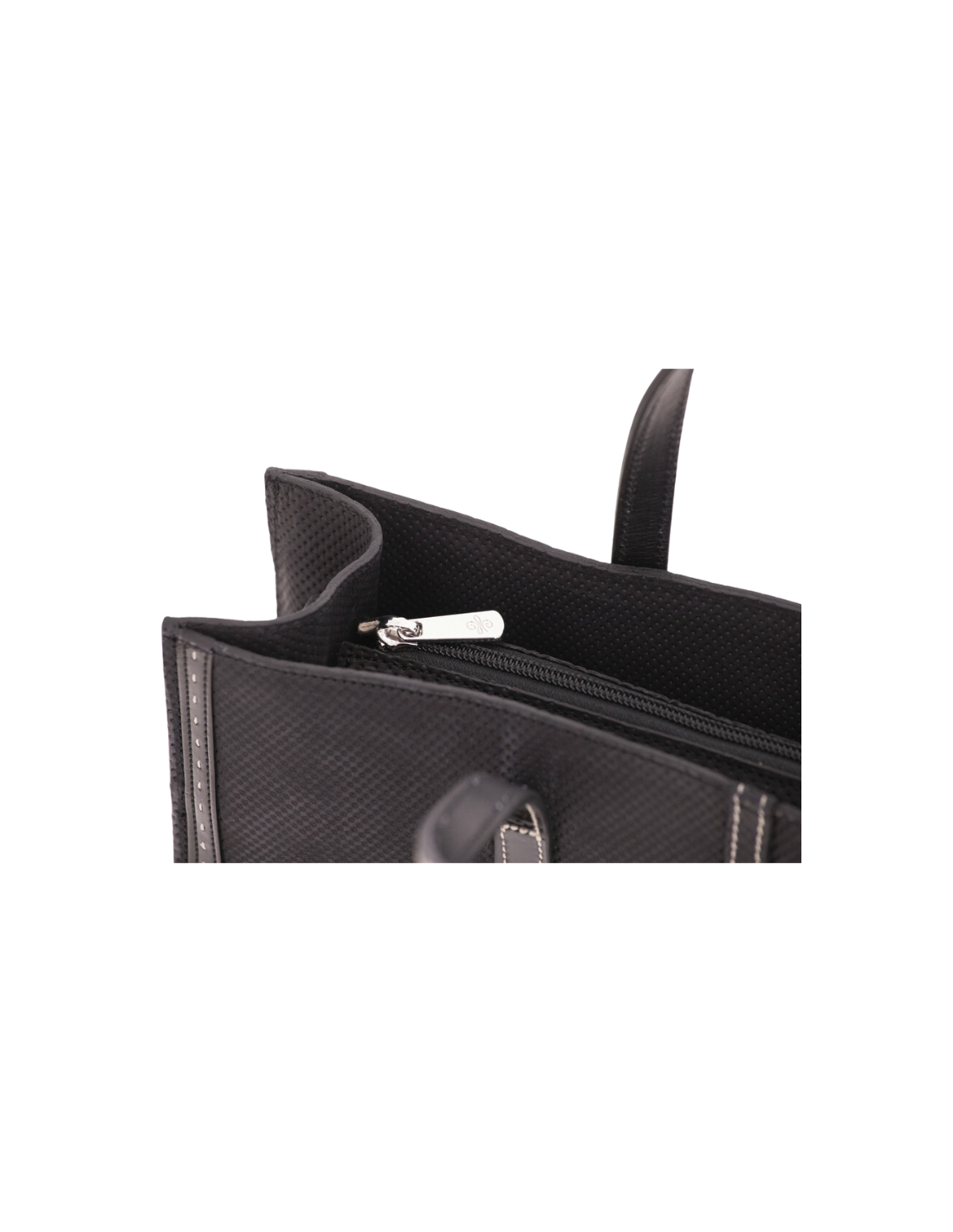 Pour le modèle noir, le cuir micro-perforé au toucher doux est orné d'un verni point sellier sur les contours, créant un look chic et contemporain.