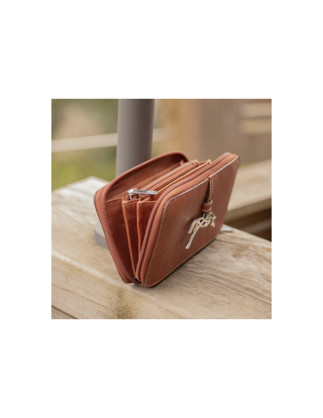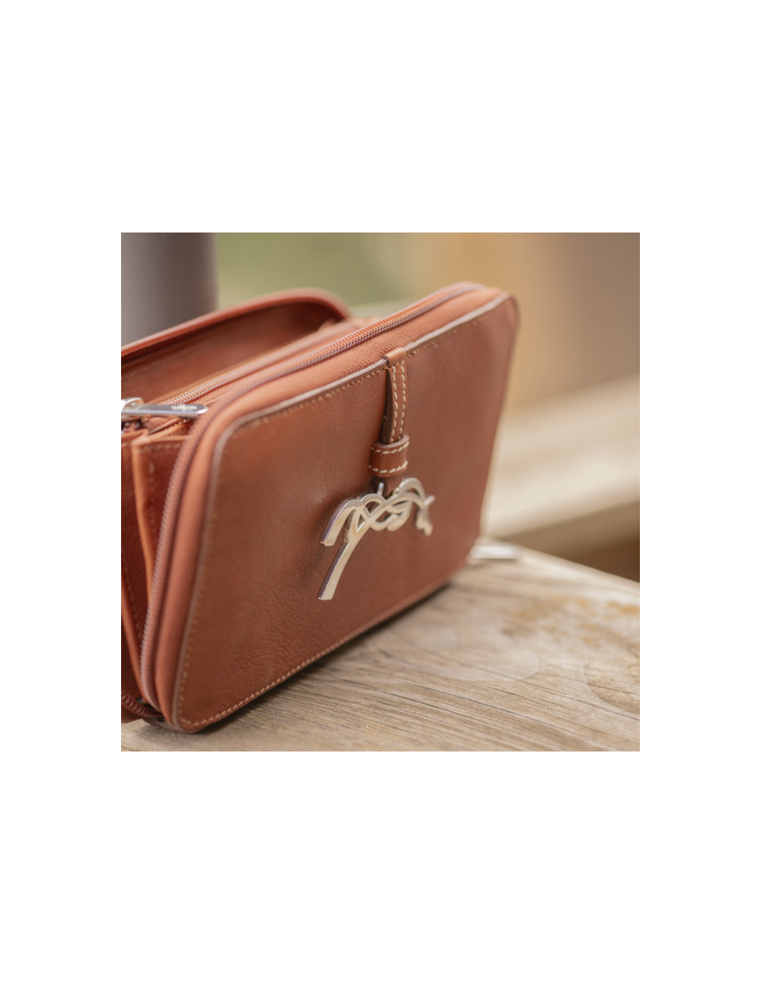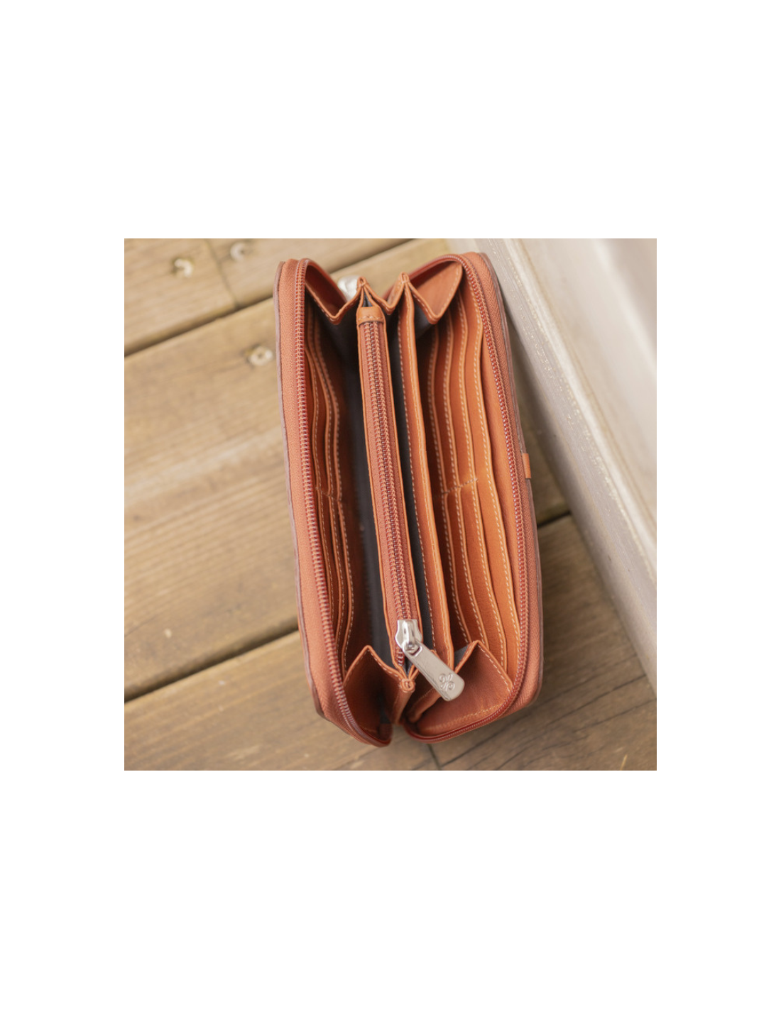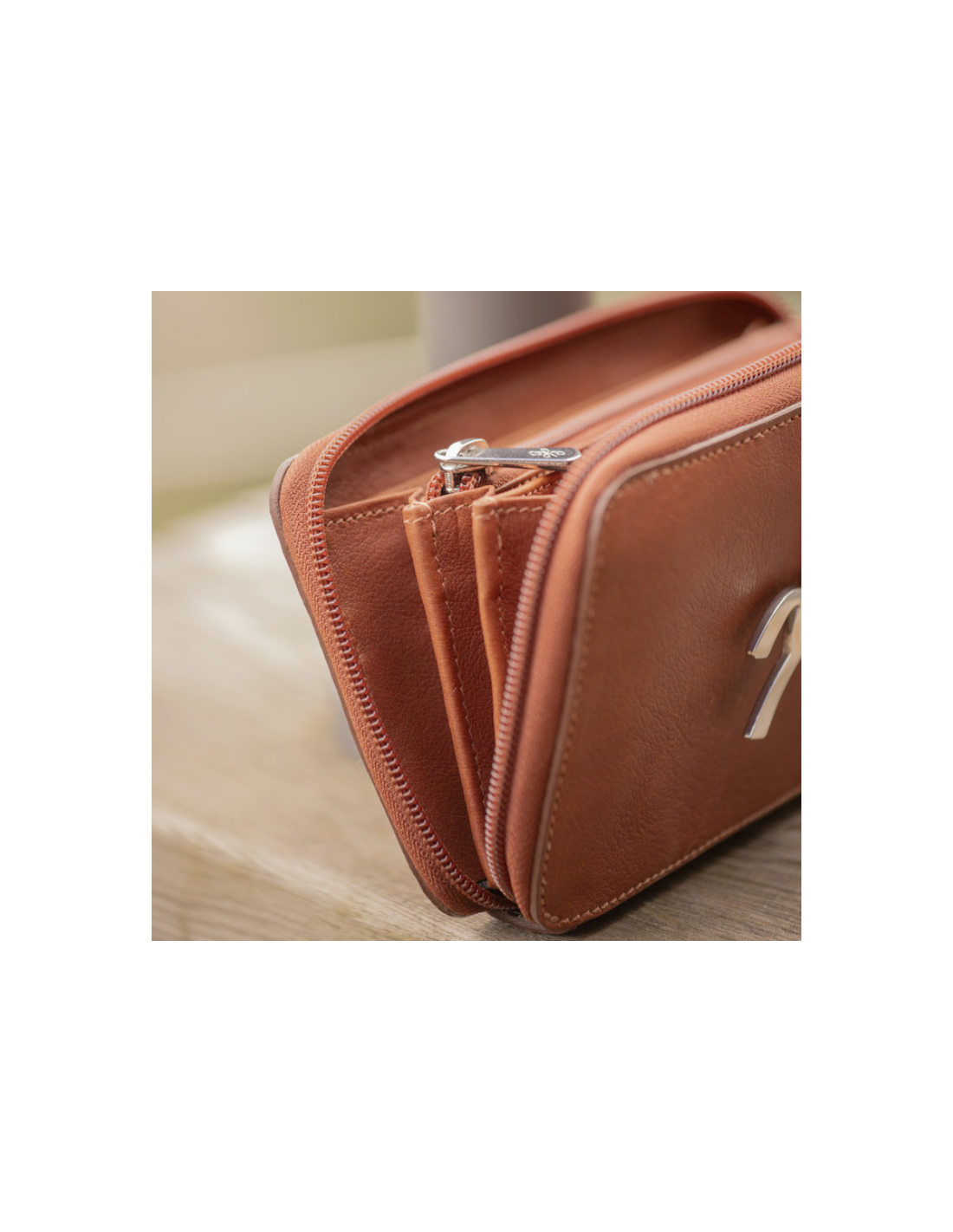 Le porte-feuille Pénélope Vittoria séduit par son élégance intemporelle et son cuir français pleine fleur couleur noisette.