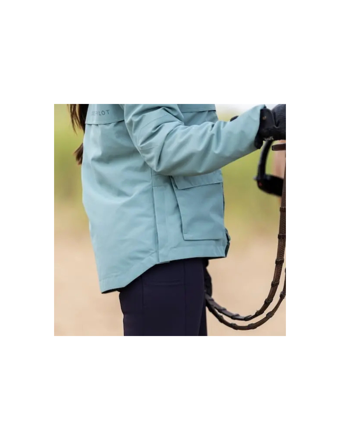 Éco-conçue, elle bénéficie d’un traitement déperlant durable DWR C0 sans PFC et d’un garnissage en fibres recyclées, respectant ainsi à la fois l’environnement et les cavaliers exigeants.