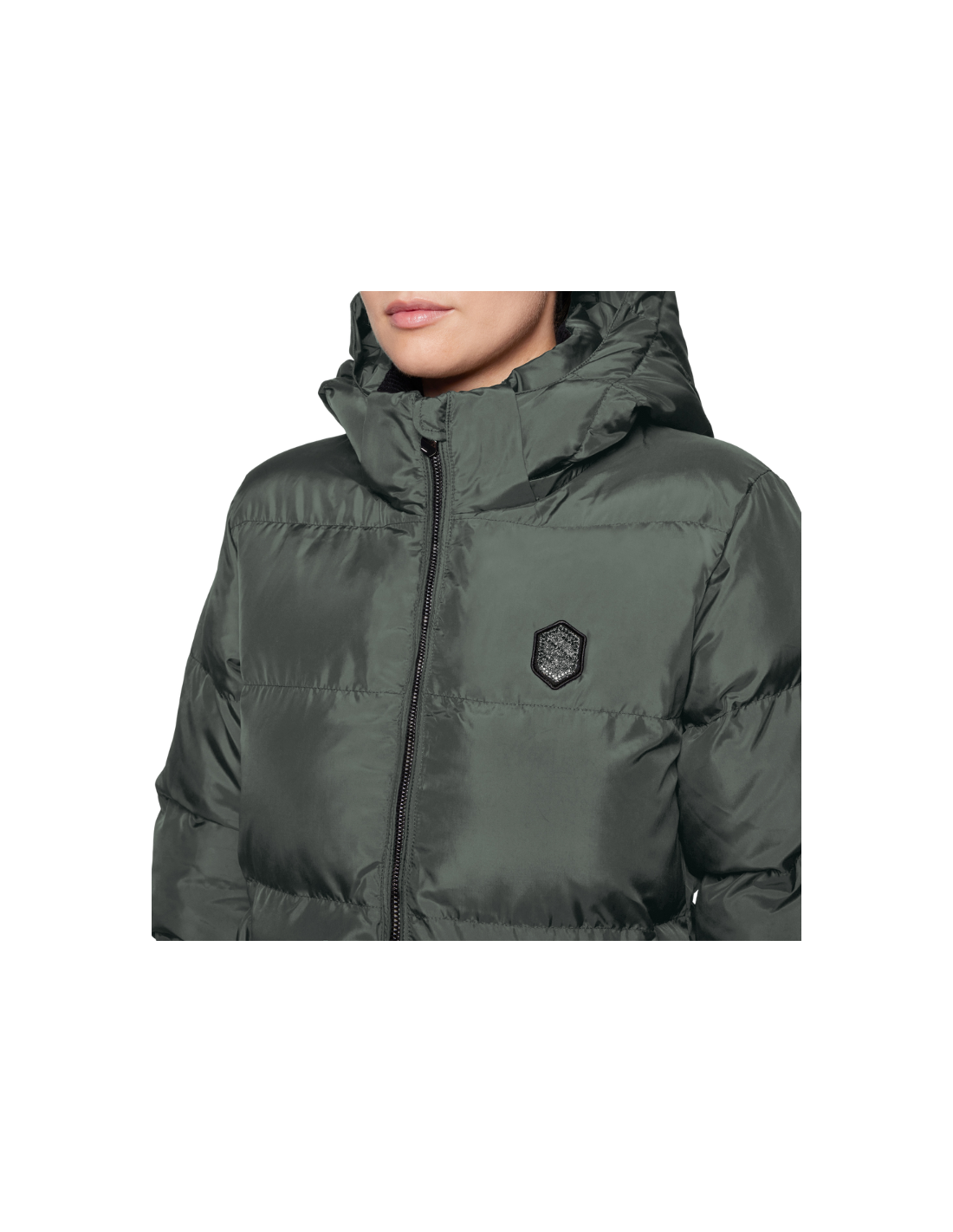 Sur le plan esthétique, ce manteau se distingue par ses finitions haut de gamme, notamment le blason Samshield orné de cristaux Swarovski sur le devant, symbole d’élégance et de sophistication.