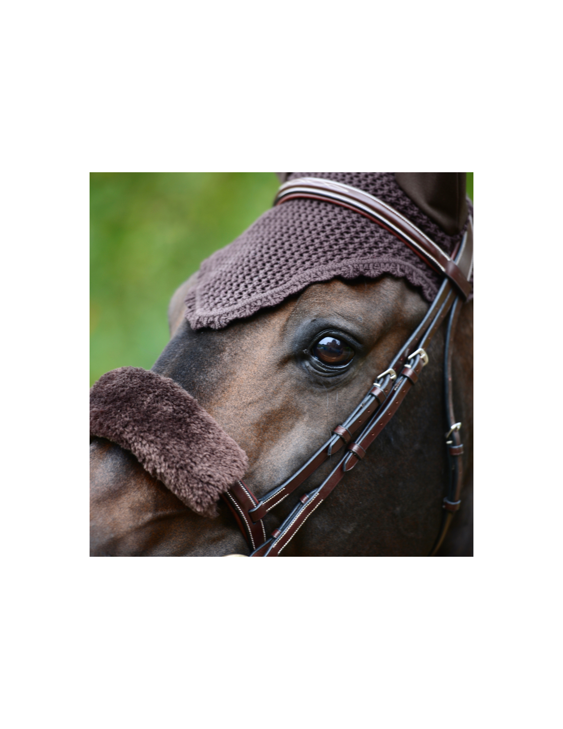 Le tissu qui entoure les oreilles est élastique pour garantir un ajustement parfait et la partie sous têtière est plus large de manière à bien tenir sous la bride.