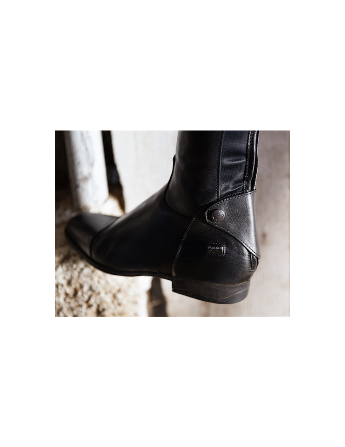 Confectionnées à la main en cuir de veau pleine fleur, elles offrent une coupe anatomique et un excellent maintien de la jambe grâce à un élastique arrière discret qui garantit à la fois souplesse et contact optimal avec le cheval.