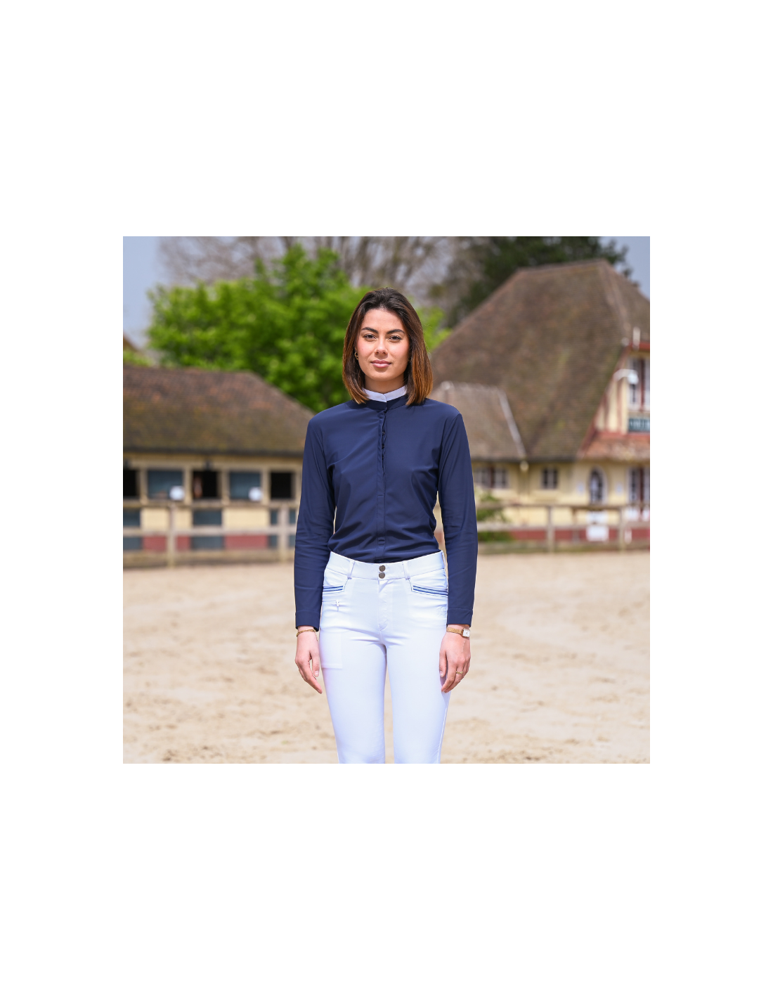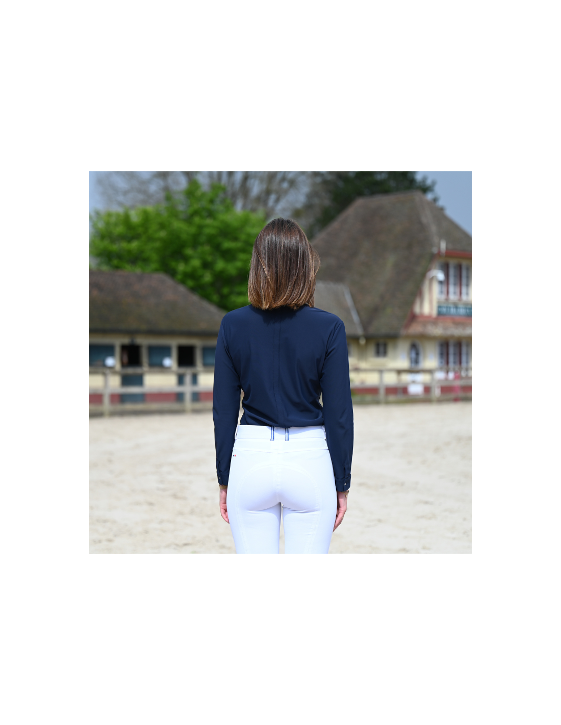 Conçue pour toutes les cavalières qui pratiquent le concours hippique et les sports équestres (saut d'obstacle, dressage, concours complet ou autres disciplines équestres) en tissu souple et élastique assurant une grande liberté de mouvement et un confort optimal.