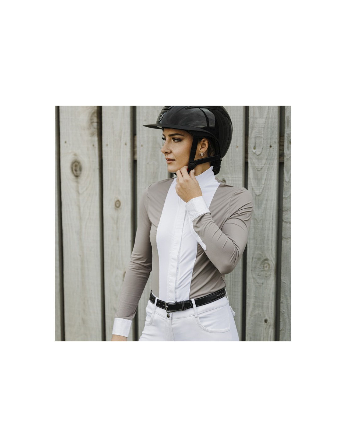 La chemise de concours Equithème Julia allie élégance raffinée et technicité moderne, idéale pour les cavalières à la recherche d’un vêtement à la fois confortable et performant.