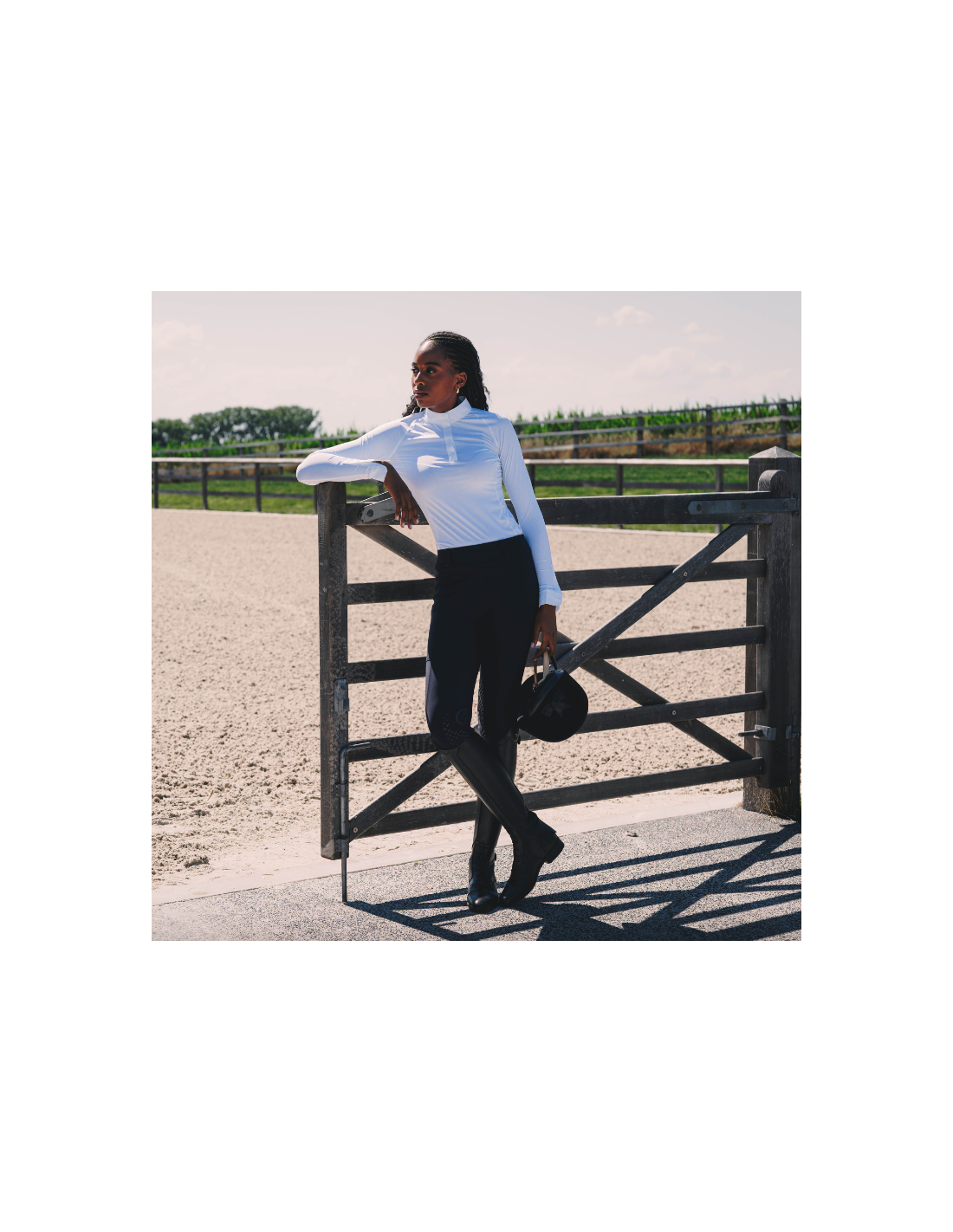 Sobre et fonctionnelle, cette chemise est idéale pour les cavaliers exigeants qui souhaitent rester élégants tout en profitant d’un confort irréprochable sur les terrains de concours.