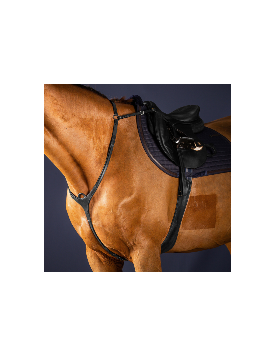 Deux élastiques de 6cm sont placés en haut des épaules afin d'être le plus souple possible dans le respect du mouvement des épaules du cheval.