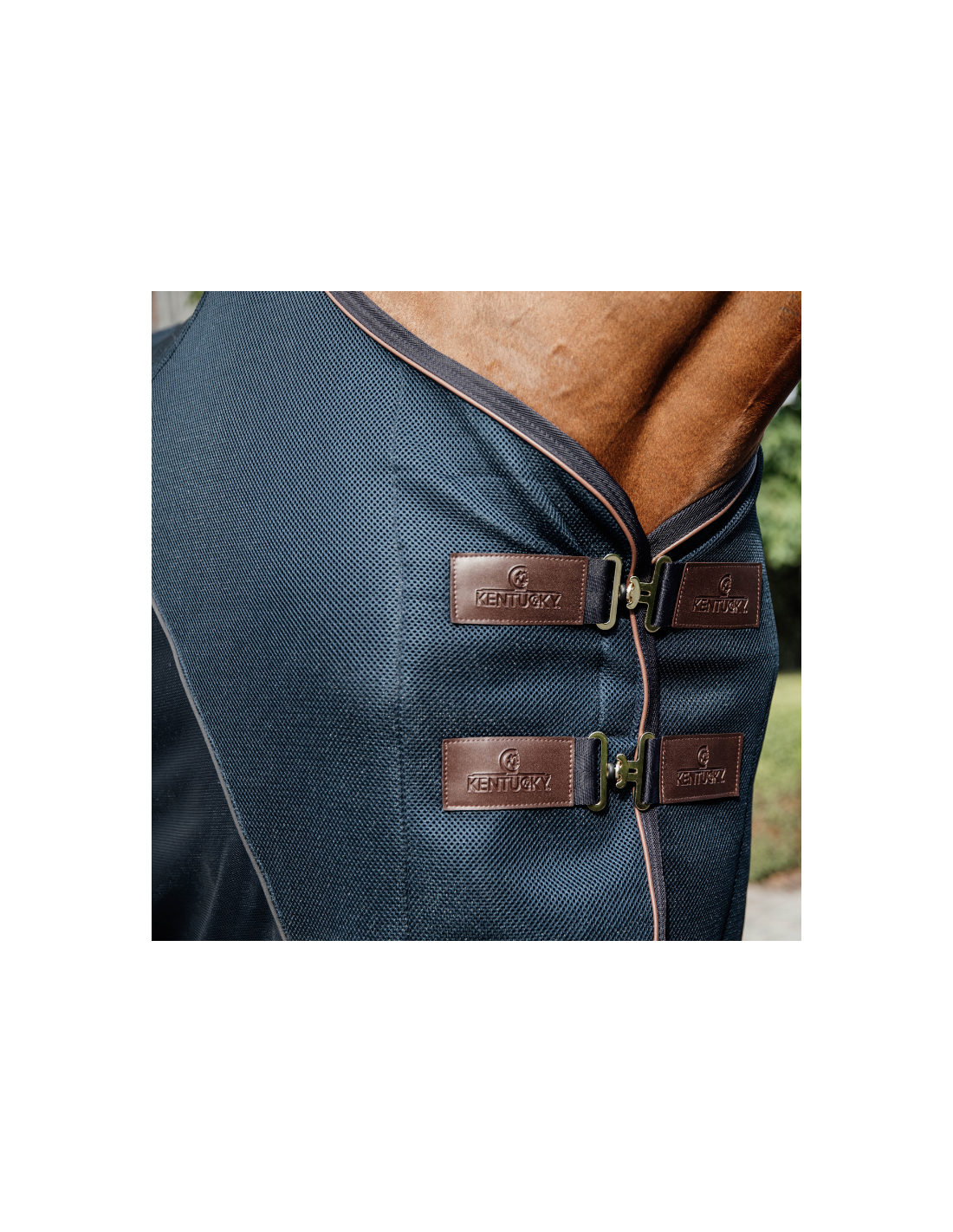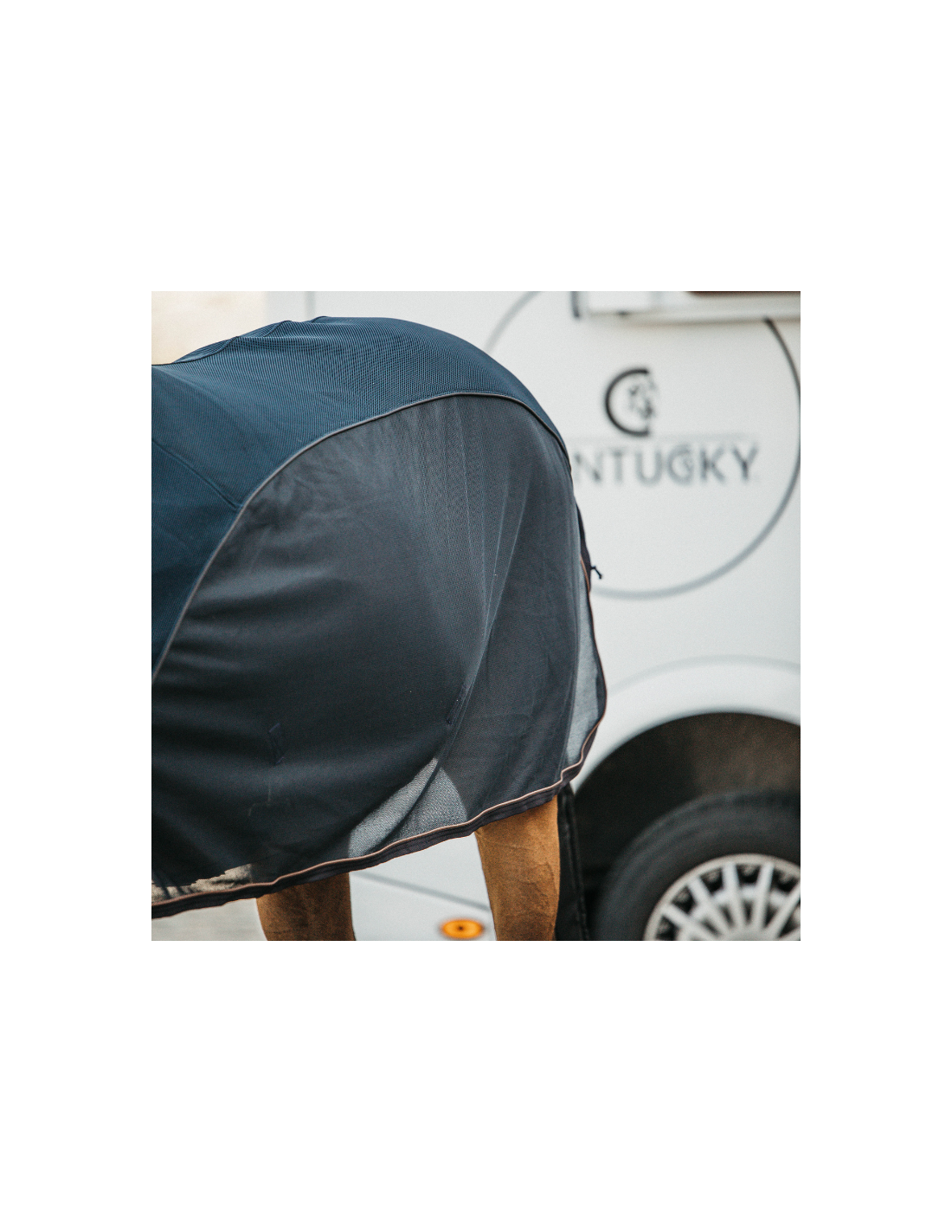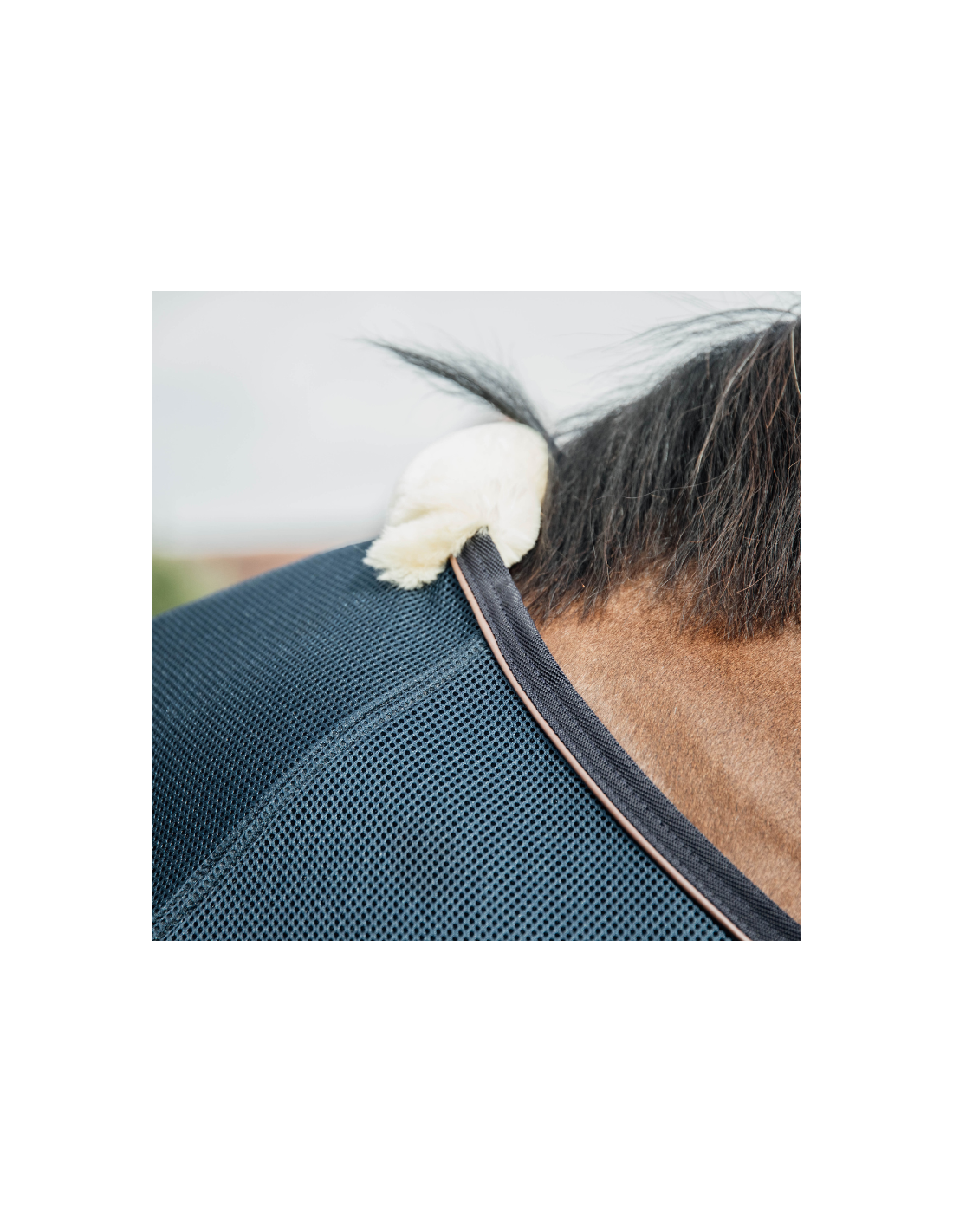 Sur la partie inférieure : le tissu anti-mouche qui n'empêchera pas seulement les insectes de déranger votre cheval, mais favorisera également la circulation de l'air.