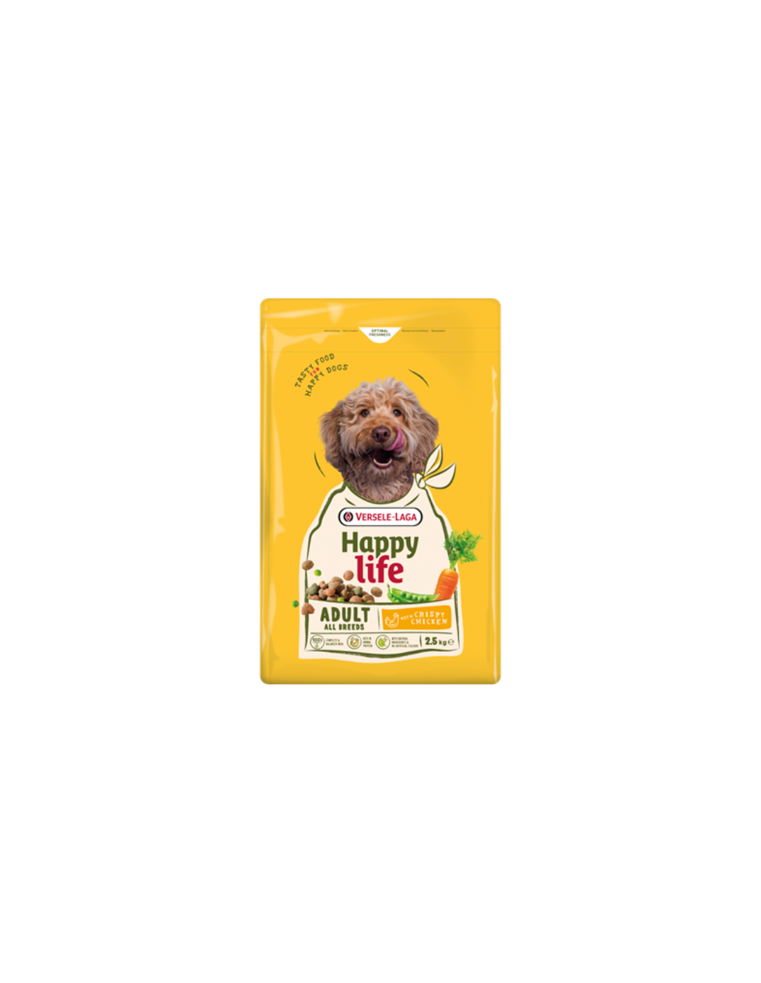 Happy life Adult au Poulet est un aliment délicieux et varié au poulet qui fournit tous les éléments nutritifs nécessaires à la vitalité du chien adulte.