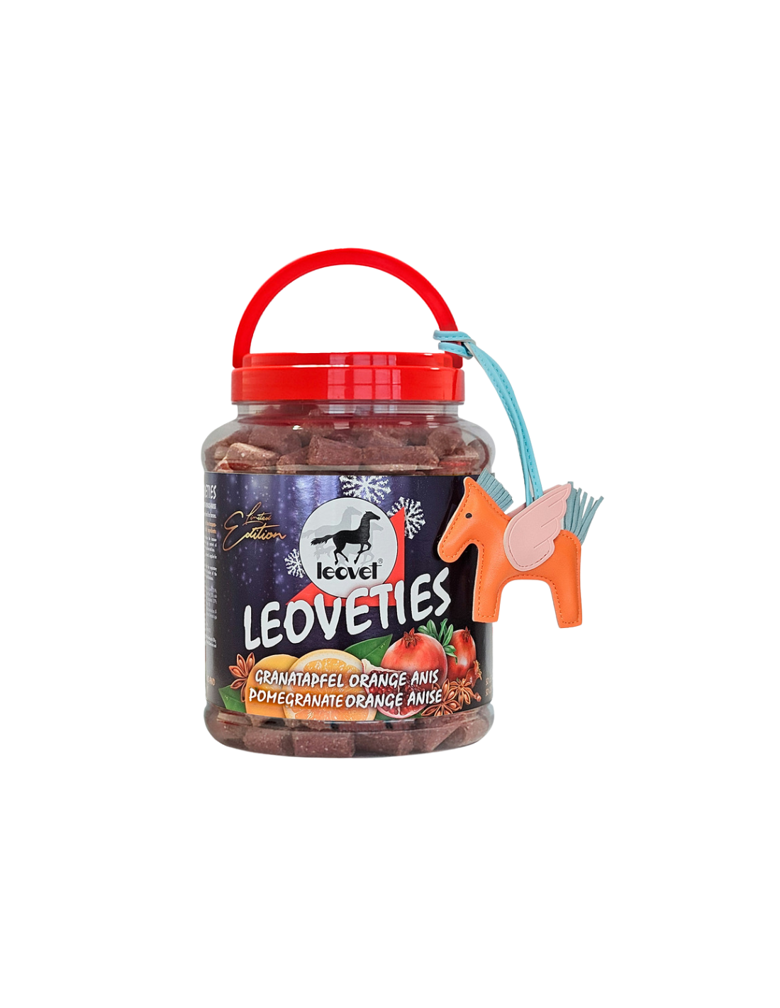 Elles sont disponibles dans une grande boîte de 2250 g avec poignée, et sont accompagnées d'un cheval-jouet !