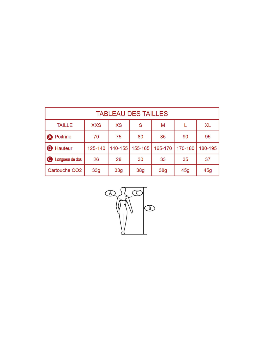 Veillez à bien utiliser la cartouche adaptée à votre taille de gilet :