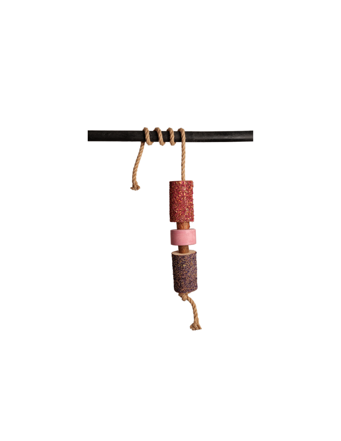 Fabriqué à la main à partir de bois de pin et de bouleau non traité, ce jouet allie textures naturelles, arômes de plantes médicinales et pierre à lécher parfumée, pour une véritable expérience sensorielle.