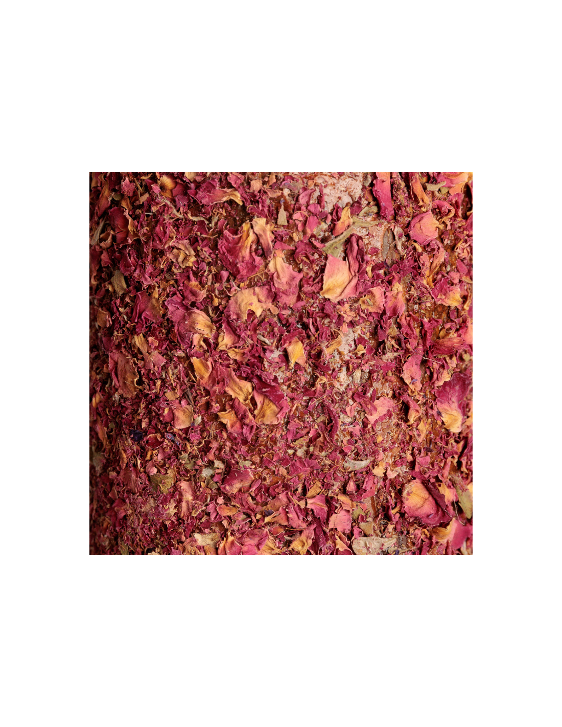 Bois de bouleau et de pin, cynorrhodons, pétales de rose sauvage, persil, pierre à lécher à la menthe et à l'eucalyptus, mauve, lavandes, huiles essentielles de menthe poivrée, golteria, aneth, eau, corde de coton, miel, huiles essentiels.