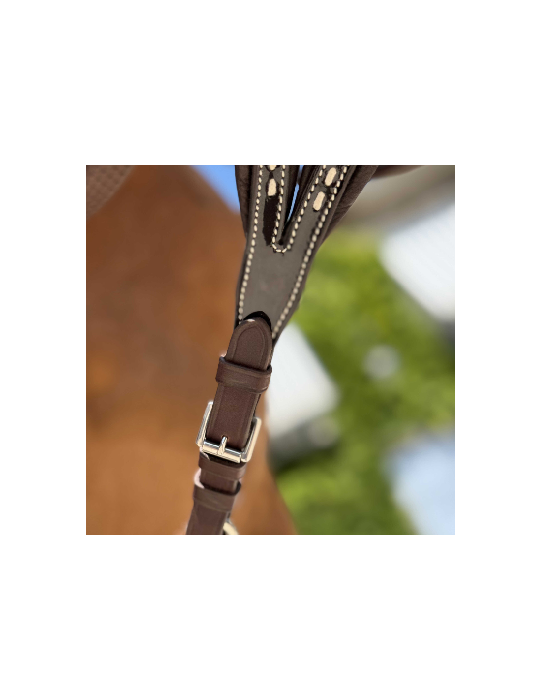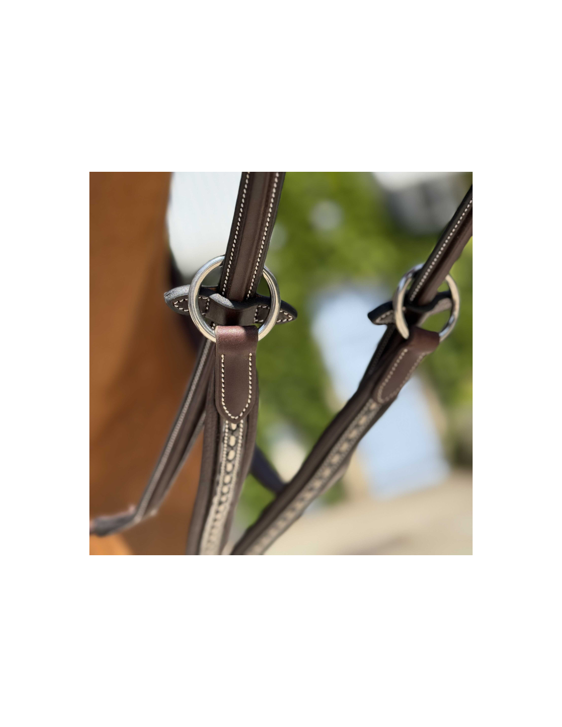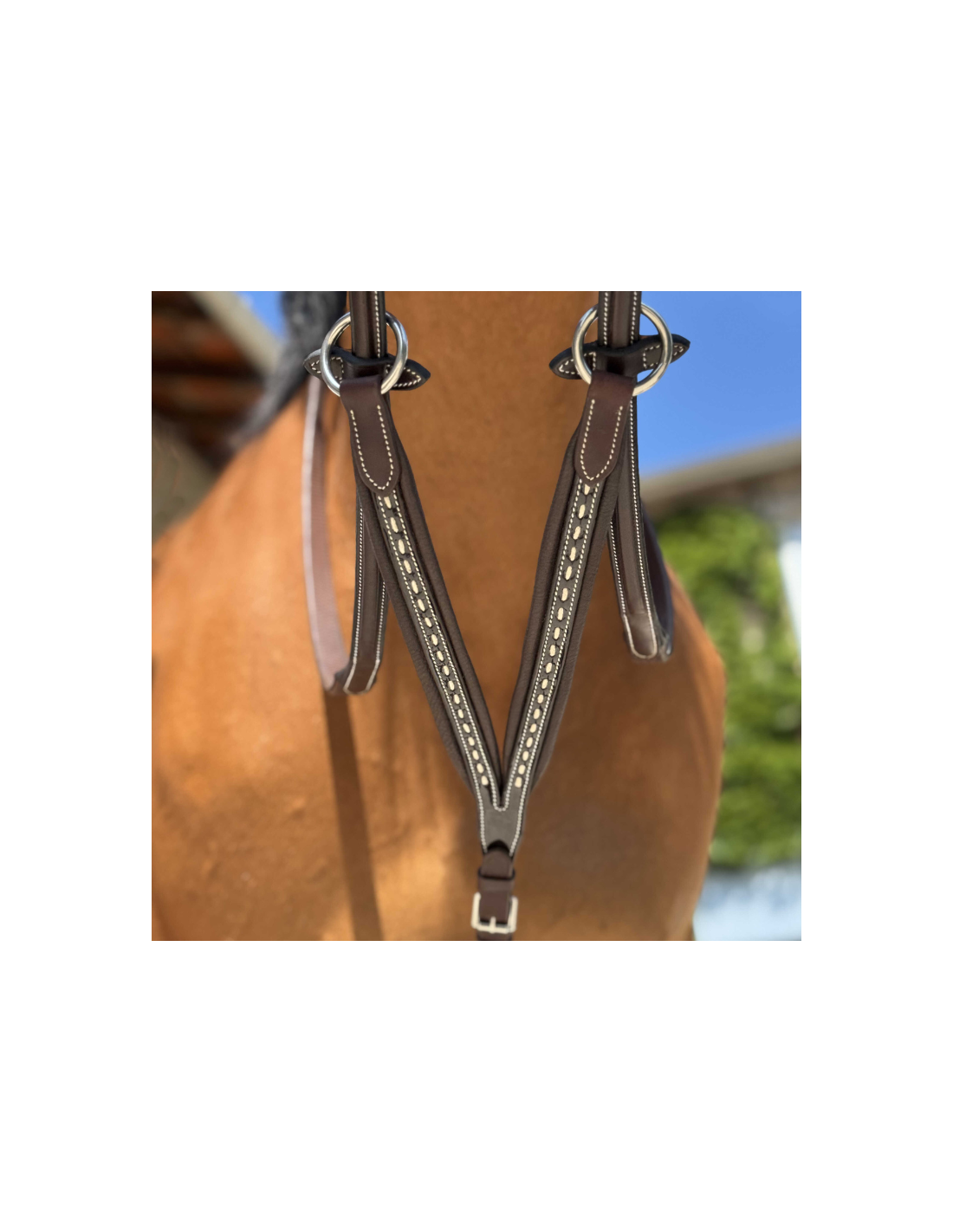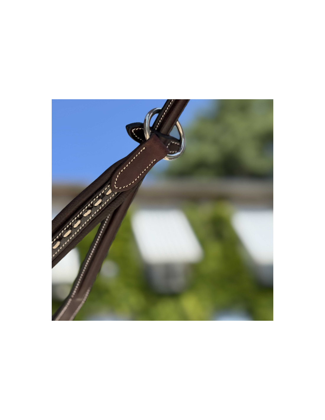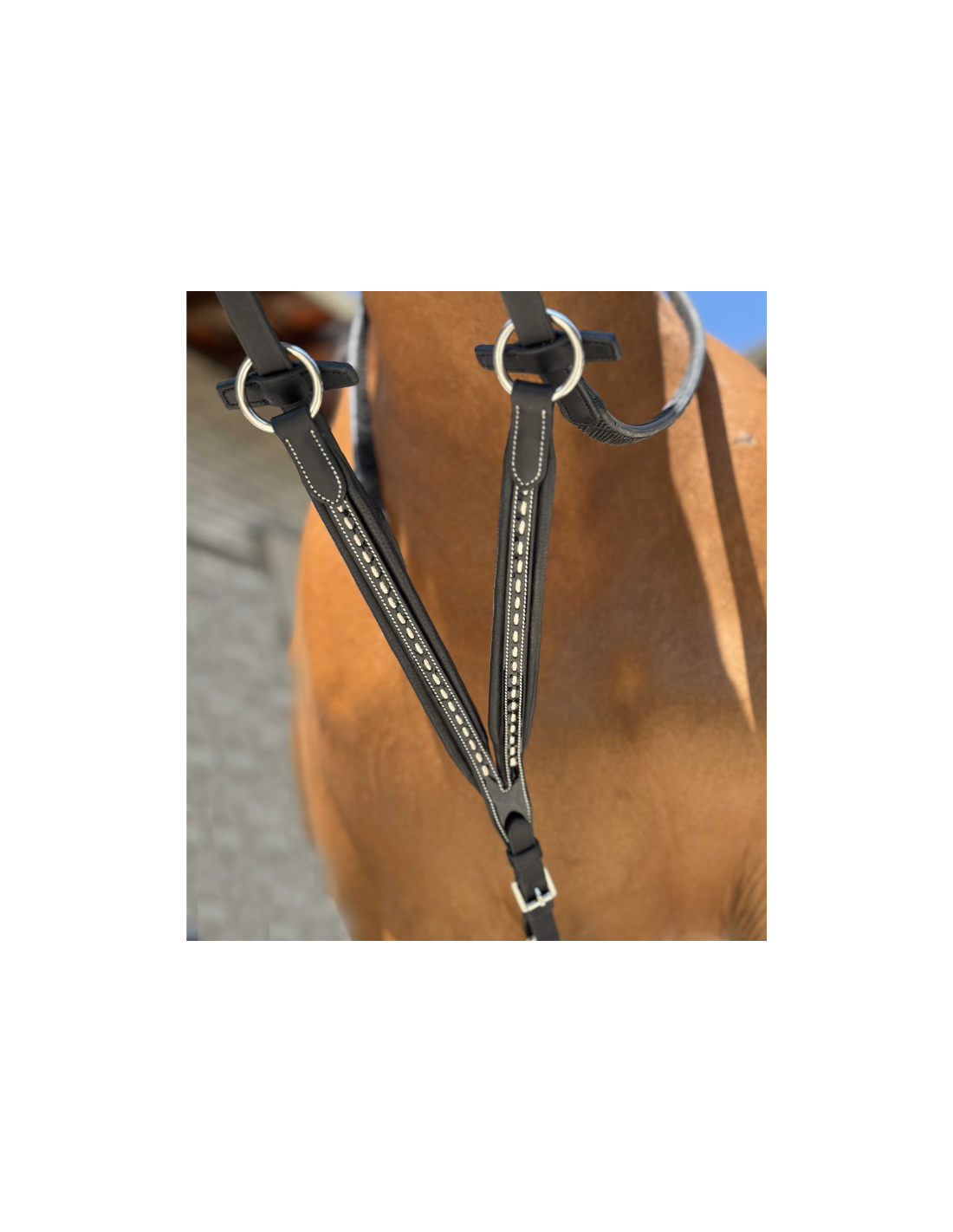 Réglable grâce à une boucle, elle s’attache facilement à la sangle tandis que les deux anneaux se glissent dans les rênes pour un fonctionnement optimal.