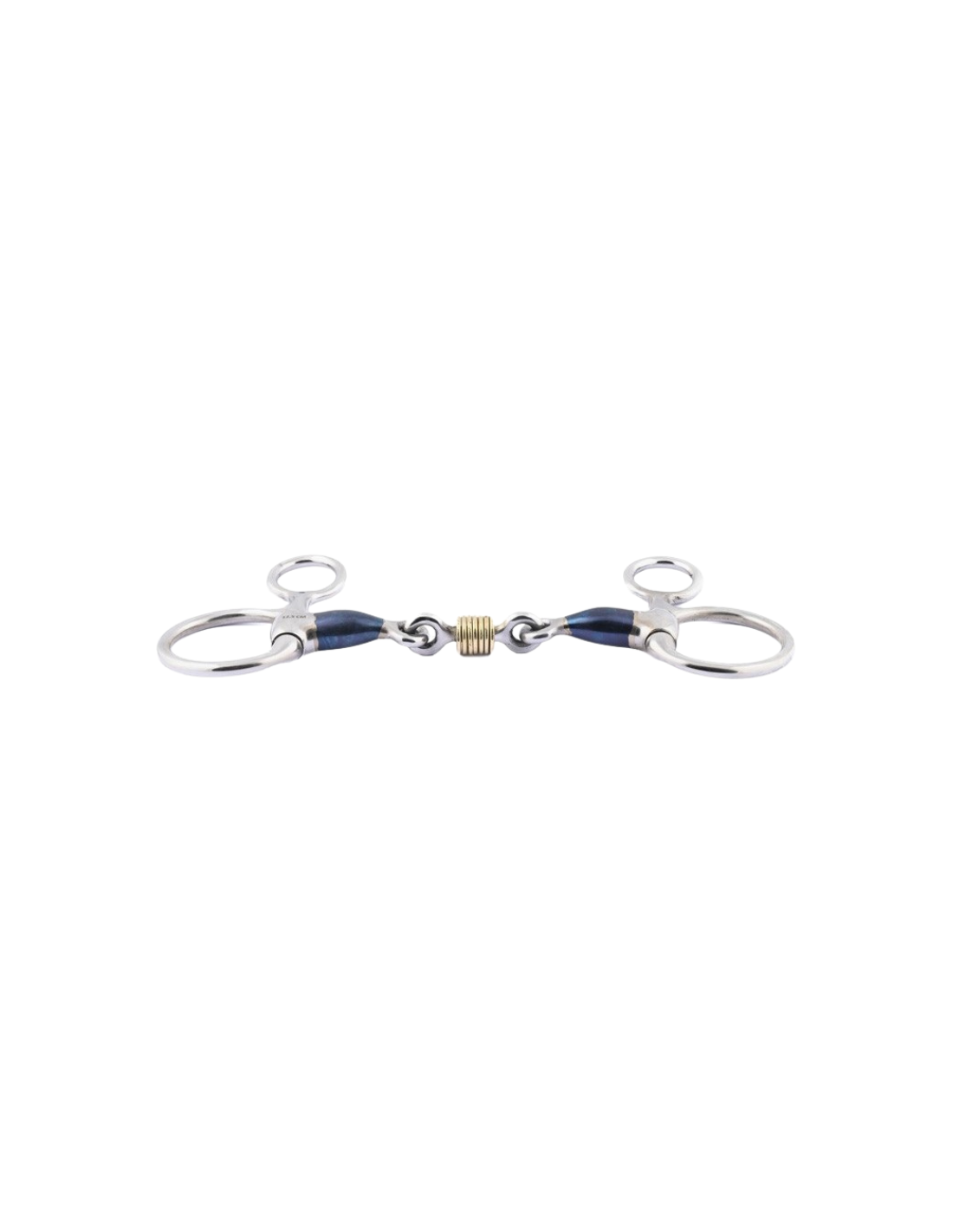 Mors Baucher Jump'In Double Brisure Blue Steel Avec Anneaux En Cuivre