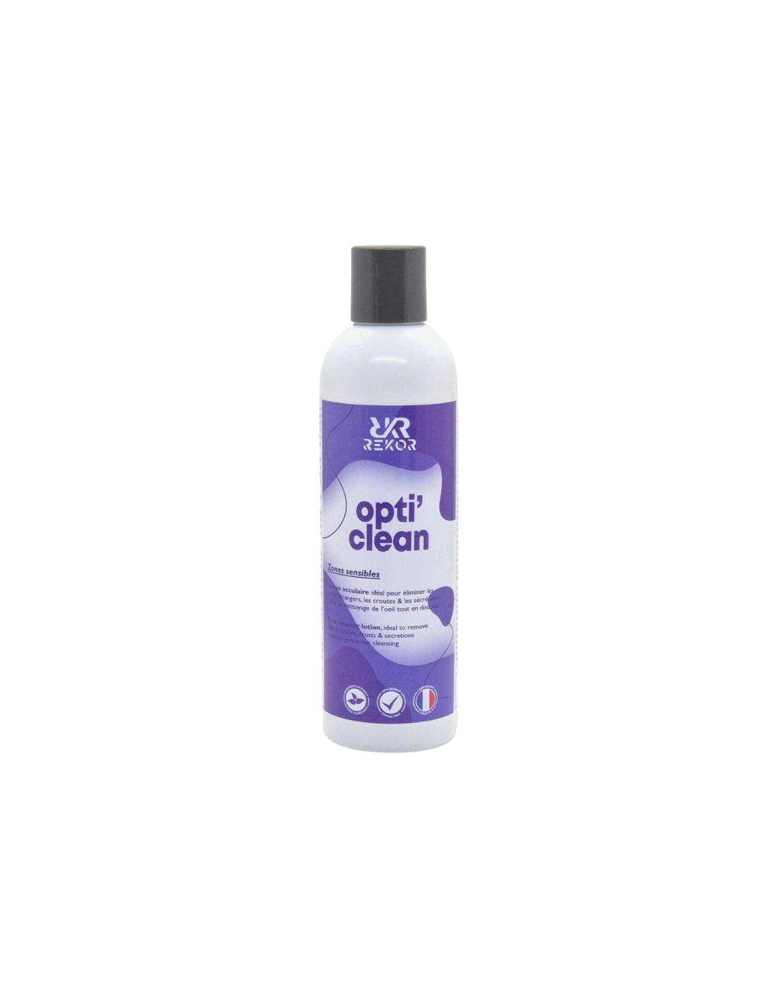 La lotion Rekor Opti Clean est spécialement formulée pour assurer un nettoyage doux, apaisant et efficace des yeux et muqueuses chez les chevaux, chiens et chats.