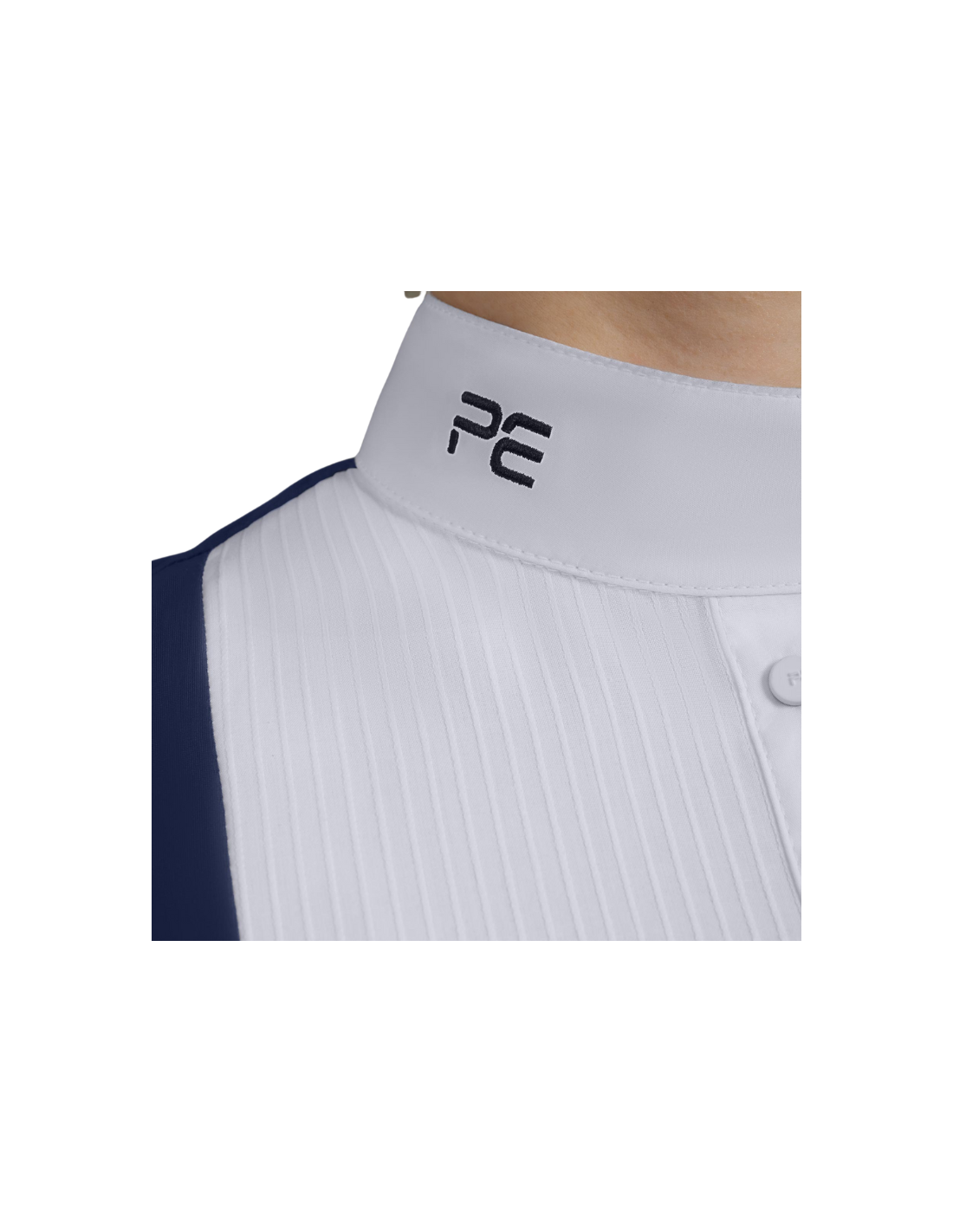 Le col haut, orné de la marque PE brodée, ajoute un détail subtil, mais élégant au col, démontrant l'attention portée aux détails et à la qualité de fabrication qui distingue cette chemise.