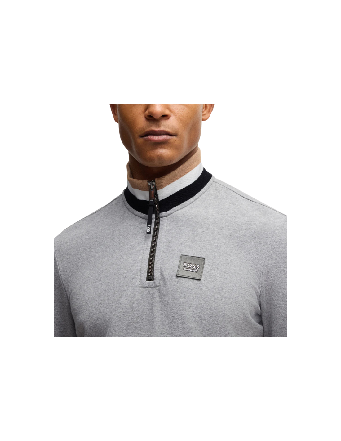 Craquez pour ce pull zippé Hugo Boss au col montant qui allie confort et élégance décontractée.