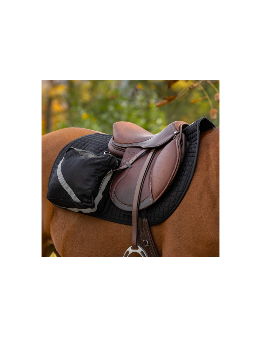 Avec sa coupe allongée, il offre une large surface de protection sous la selle, permettant de répartir les pressions et de poser l’équipement sur une zone propre et sèche.