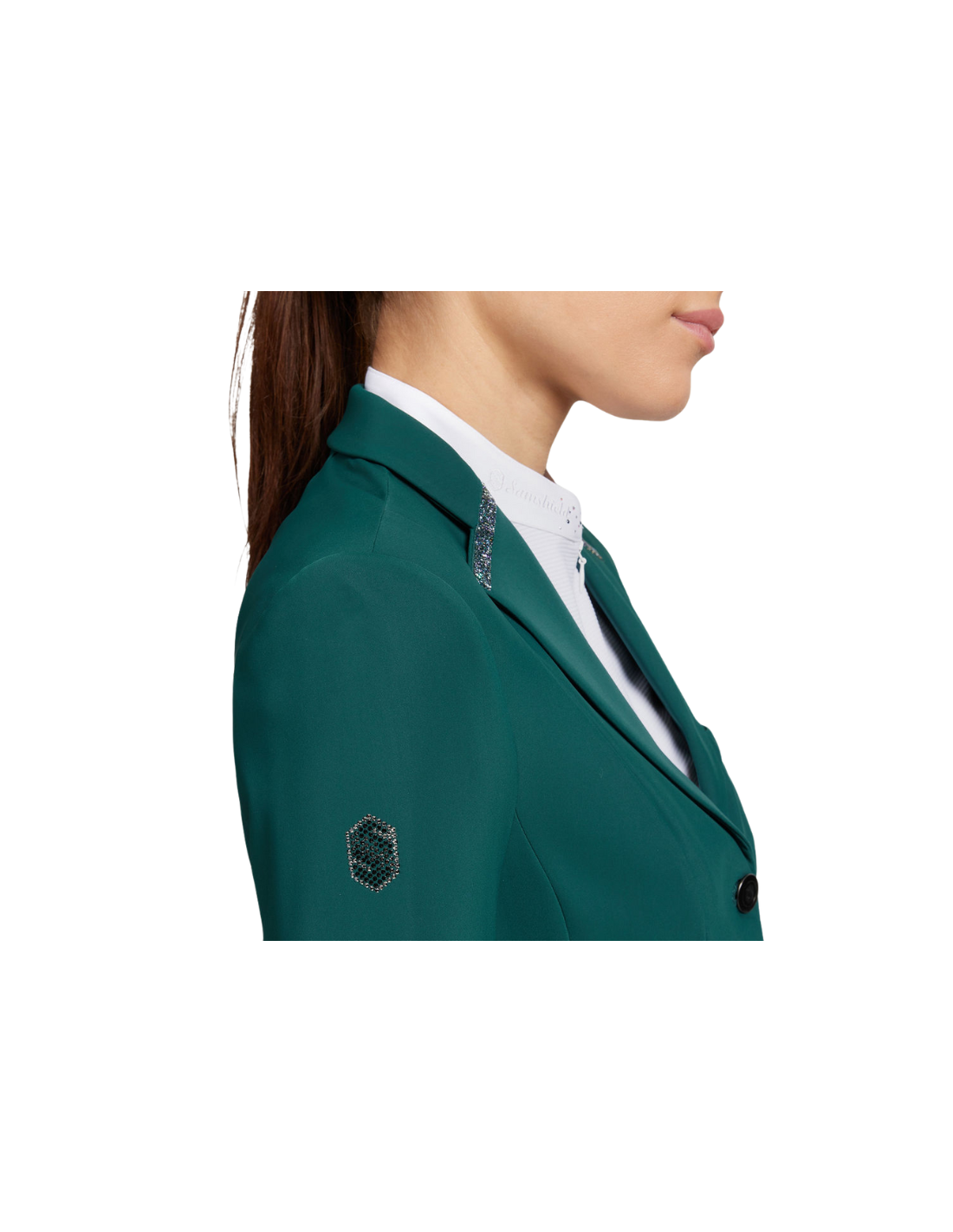 Avec une composition de 73% de polyamide (PA) et 27% d'élasthanne (EA), cette veste représente le mariage parfait entre innovation technologique, performance équestre et responsabilité environnementale.